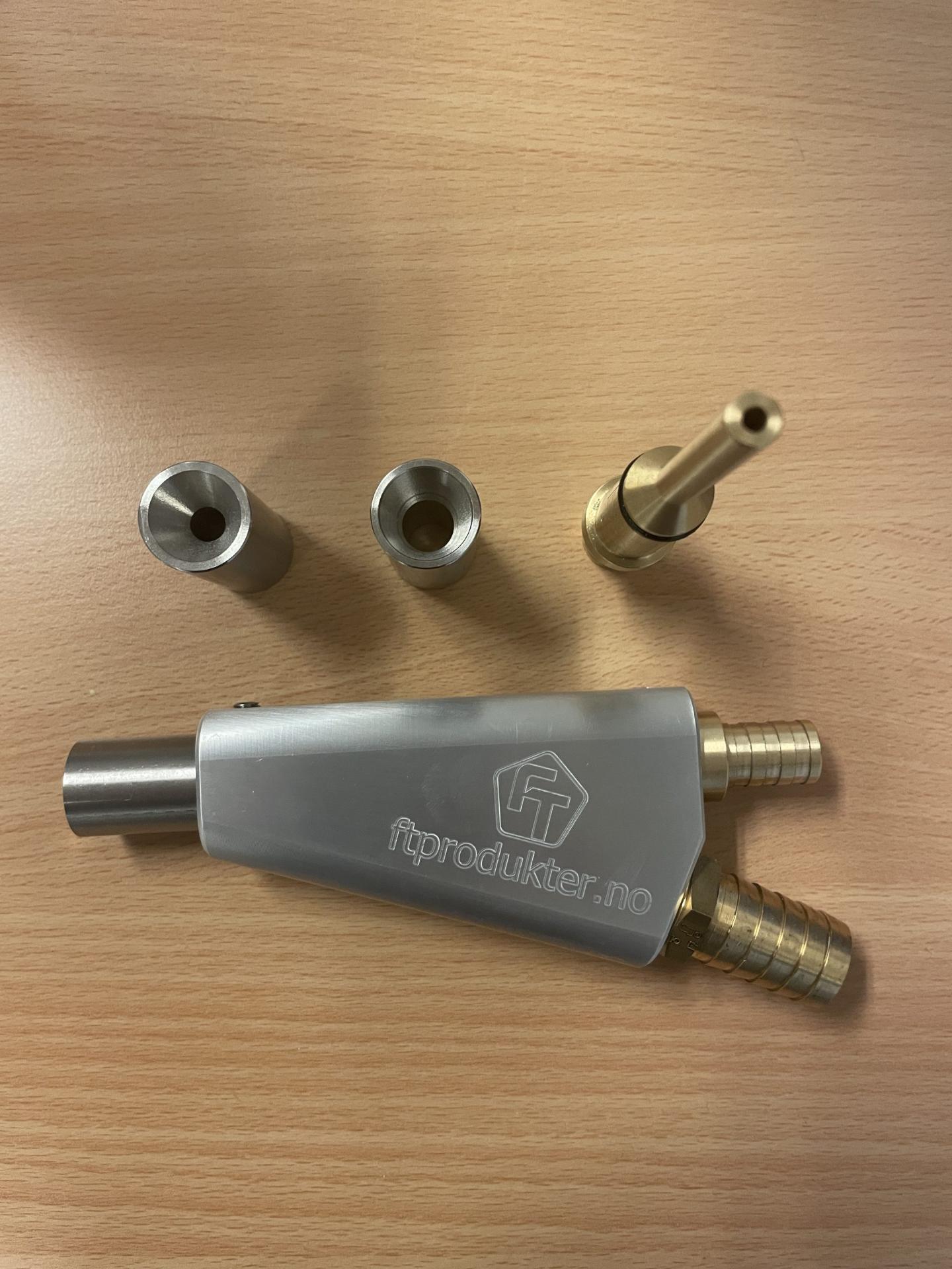 FTP 15 bruker en kontinuerlig strøm av vann og medie som renser og bearbeider delen. Dette gir en kontrollert prosess med lav varmeutvikling og mindre slitasje på materialet. Maskinen er tilpasset arbeid med aluminium, rustfritt stål, bronse, messing og tilsvarende metaller.